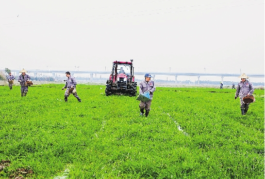 2月27日,在嫩绿的田野里,龙游种粮农民正在热火朝天地翻耕。 叶敏 摄