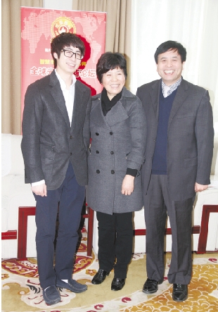智慧传承,基业长青。三杭控股集团董事长郑以焕(右)高兴地将儿子郑龙交给海亮集团董事长冯亚丽导师。