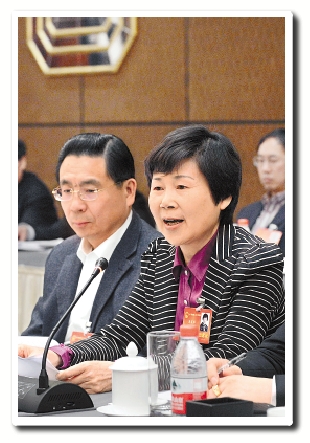 ▲3月9日,浙江代表团举行全体会议,审议全国人大常委会工作报告。图为陈笑华代表在发言。