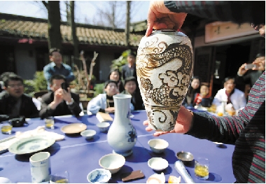 3月15日,在杭州中山路六部老茶馆,30多位古瓷爱好者拿出收藏的瓷器,请专家鉴定。一位专家看了后说,这些瓷器是真,但年代有假,建议收藏爱好者谨慎购买。 本报记者 邵全海 钱永安 摄