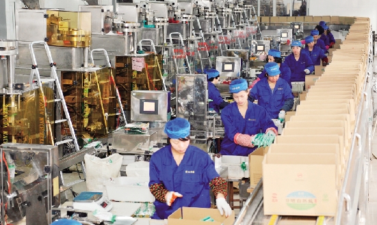 | 近日,浙江绿海制盐有限公司生产车间内,工人们忙着把经过流水线的一袋袋食盐放入包装箱。前不久,该公司以每亩税收60.75万元获得岱山县“亩产英雄”第一名而受到表彰。去年该县出台政策,对企业按亩均实缴税收进行考评,加快经济发展从粗放型向集约型转变,以最小的资源环境代价获取最大的效益产出。 沈磊 摄 |
