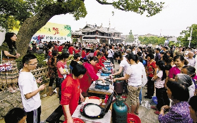 新桥镇金大田村民俗活动——包食饼筒比赛