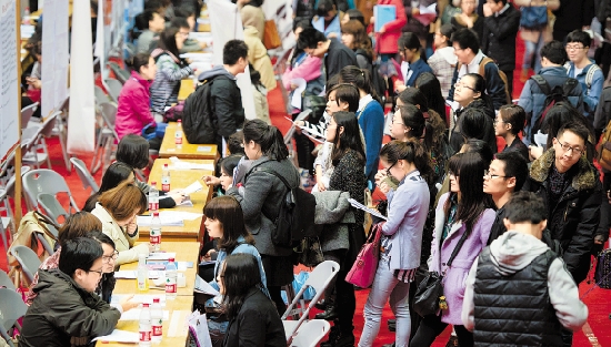 2014年3月19日下午,浙江大学在玉泉校区举办2014毕业生春季招聘会,共有300余家用人单位入场。 陈嘉澍 摄
