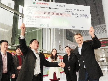 | 3月19日,德清县首家“洋家乐”创办者、来自南非的高天成(右一)赶到当地治水办,把一张10万元的支票交到负责人手中。高天成说,想贡献自己的一份力量,和大家一起把德清的小溪、河流治理得更加清澈。 邵全海 姚海翔 潘宗敏 摄 |