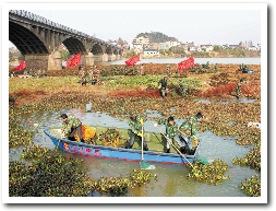 龙游军民清理水葫芦。