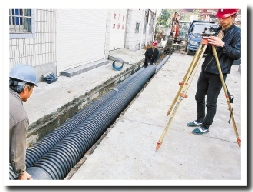 柯城区荷花街道大南门村截污纳管工程正在施工。
