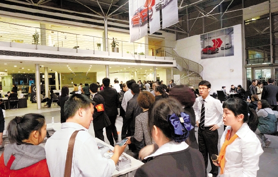 3月25日,杭城各家4S店纷纷挑灯夜战,把营业时间延长到晚上12点,前来购车的顾客络绎不绝。 本报记者 吴煌 摄