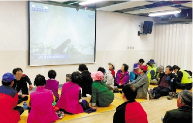 3月31日,韩国居民在白翎岛上的避难所内看电视。 新华社发