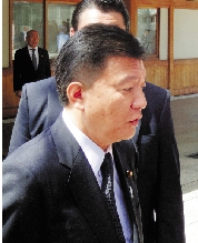 4月12日,日本内阁总务大臣新藤义孝在东京参拜靖国神社后离开。