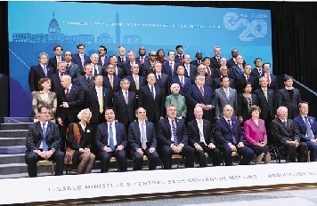 4月11日,在美国首都华盛顿,二十国集团财政部长和央行行长参加会议后出席集体合影活动。 新华社记者 殷博古 摄