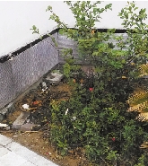 绿化带中,鲜花正在盛开,然而在花朵之下,却是随手丢弃的餐巾纸、吃剩下的半个苹果、串关东煮的木棍……