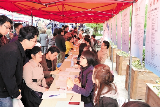 4月19日,杭州市四季青街道江锦社区党支部专门举办了“钱江新城楼宇企业专场招聘会”,近40家新城的楼宇单位提供1500余个就业岗位,让群众真切体会到“找工不用出远门,岗位就在你身边”。 本报记者 叶寒青 摄