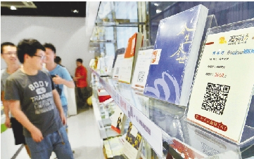 杭州地铁商业街上的二维码实体店,每种商品都配有二维码,顾客只要扫一扫商品的二维码,就能直接进入商品的网店下单。 龙巍 摄