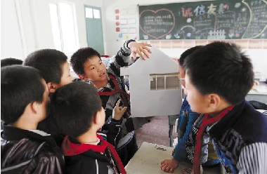 平湖小学生曹胡冰为同学们讲解装置的原理。