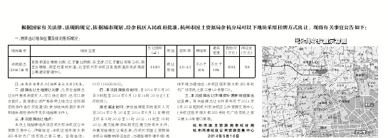杭州市余杭区国有建设用地使用权挂牌出让公告