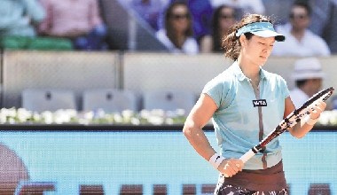 5月9日,在WTA马德里网球公开赛单打四分之一决赛中,中国选手李娜1比2不敌俄罗斯选手莎拉波娃,无缘四强。 新华社发