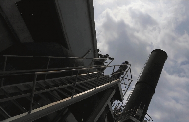 高耸入云的大烟囱,爬上去不能心慌。