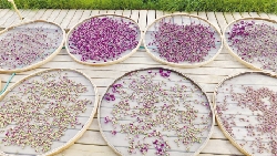 ⑤办公楼顶,晾晒着刚收获的紫枝玫瑰花蕾,散发着阵阵清香。