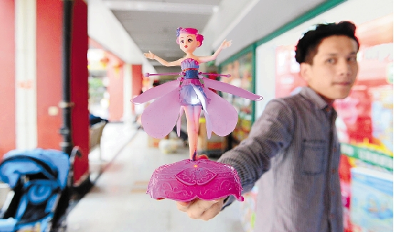 5月12日,在义乌国际商贸城,一位在空中飞行的“小仙子”吸引了诸多客商目光,不少客商当场下订单。这款名为“飞行小仙子”的感应控制玩具,上市不久就成为今年爆款,产品以外销俄罗斯为主,内销占两成左右。