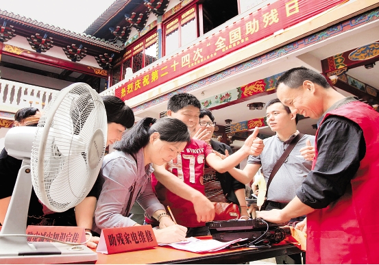 全国助残日前夕,温州龙湾区残联组织表演队伍到瑶溪街道南洋社区举行慰问残疾人演出,并提供各项服务。 苏巧将 叶晓东 摄