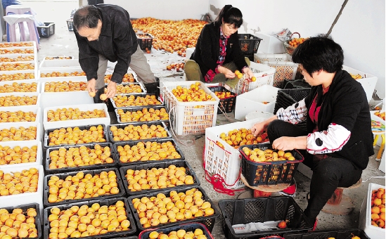 5月18日,黄岩区平田乡桐外岙村果农在分装枇杷,准备运往长三角市场。 台州日报记者 杨辉 摄