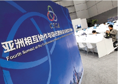这是亚洲相互协作与信任措施会议第四次峰会新闻中心媒体公共工作区(5月18日摄)。 新华社记者 陈飞 摄