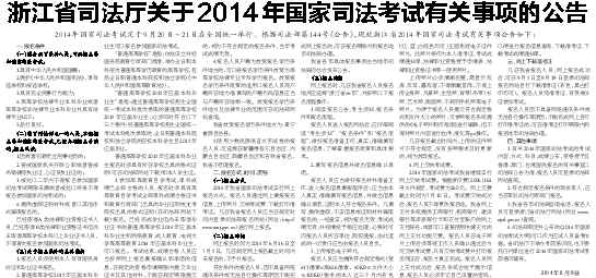 浙江省司法厅关于2014年国家司法考试有关事项的公告