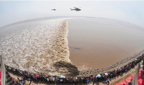 诗画浙江是个温柔的所在,小桥流水的温柔,评弹丝竹的温柔,梦里古镇的温柔。然而在这温柔乡里,钱塘江大潮却独树一帜地展现出浙江景致的阳刚一面。钱江潮从东而涌来,似一条银线,渐渐地形成了“则玉城雪岭际天而来,大声如雷霆,震撼激射,吞天沃日,势极雄豪”的大气之势。既有雄浑激越、排山倒海的大潮,又有婉约细腻的历史文化,一刚一柔的结合,正是海宁最为突出的气质。