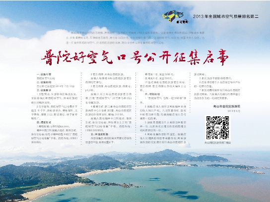 投稿人需在稿件中注明姓名、联系方式、身份证号码,并在信封上注明“普陀好空气口号征集”字样。咨询热线:(0580)3022022。