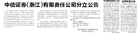 中信证券(浙江)有限责任公司分立公告