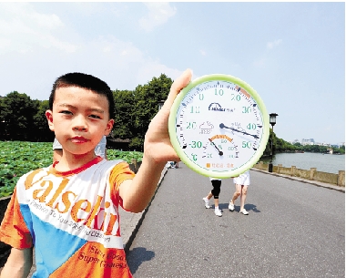 7月21日,午后的杭州西湖断桥,太阳下的温度已达45℃。 里尔 摄