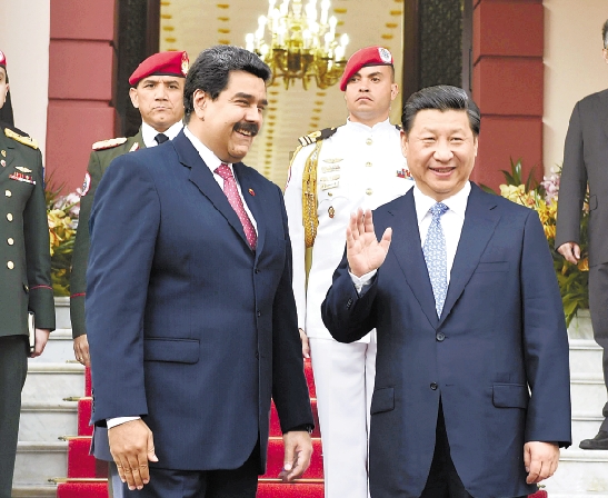 当地时间7月20日,国家主席习近平在加拉加斯同委内瑞拉总统马杜罗举行会谈。 新华社记者 李学仁 摄