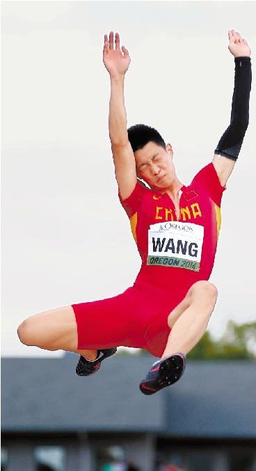 7月24日,在美国尤金举行的2014年国际田联世界青年锦标赛男子跳远比赛中,中国选手王嘉南以8米08的成绩夺得冠军,中国选手林清与日本选手城山正太郎分获亚、季军。 新华社发