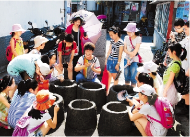 7月30日,建德梅城中心小学乡村少年宫的师生,走进古镇梅城的大街小巷,了解六眼古井、古城墙楼台等历史文化古迹,了解古严州的悠久历史。 宁文武 摄