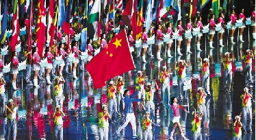 中国代表团旗手高举国旗入场。 新华社记者 孟永民 摄