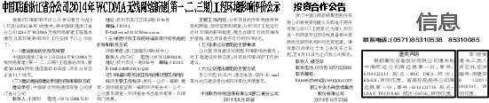 中国联通浙江省分公司2014年WCDMA无线网络新建(第一、二、三期)工程环境影响评价公示