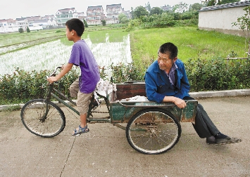 放学后,李胜骑着三轮车带爷爷去医院看病。