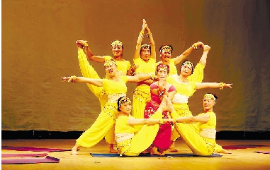 9月13日下午,六横镇600多名群众,观看了由普陀区武术协会和区老年体协共同组织的送体育下乡展示活动,精彩表演博得了阵阵掌声。图为瑜伽协会表演的瑜伽和健身气功八段锦。 刘生国 摄