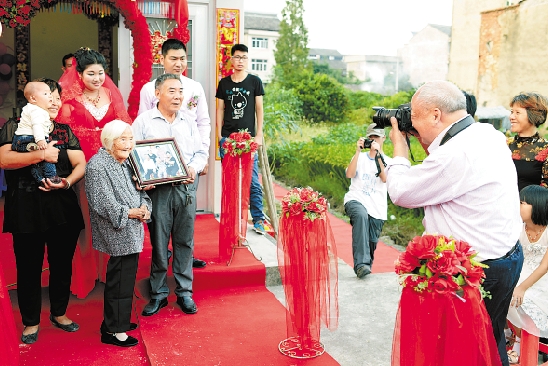 2014年国庆,徐永辉为叶兴法一家拍摄“四代同堂”的全家福。 张良 摄