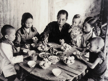 1959年的中秋节,叶根土一家生活已经有了初步改善,这是他们一家欢度解放后第十个中秋节。 徐永辉 摄