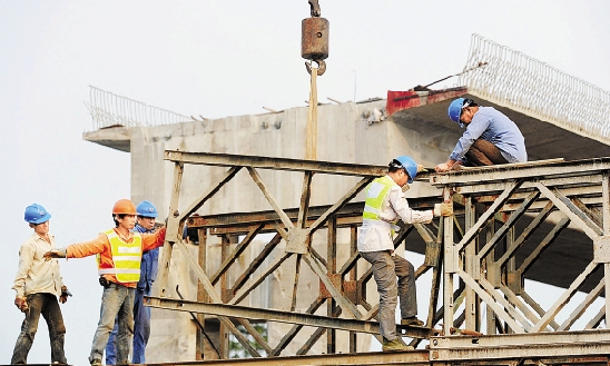 10月3日,省重点工程——杭州萧山机场公路改建工程工地机声隆隆,建设者们放弃节假日休息,奋战工地。 本报记者 吴元峰 摄