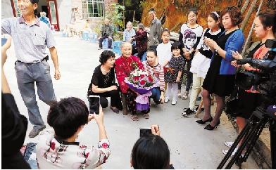 日前,在衢州市衢江区横路办事处前湾村,村里有名的“活雷锋”黄金娣老人过百岁生日,村民们为她热热闹闹地贺寿。黄金娣平时乐于助人,深受村民敬重。