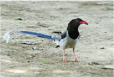 红嘴长尾鹊在丛林里觅食。 张建成 摄