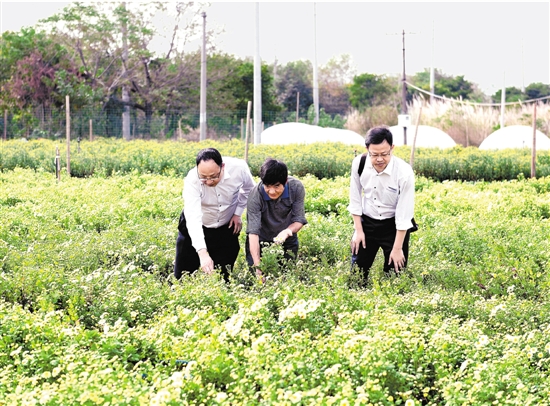 兰溪农合行客户经理到杭白菊生产基地了解农民贷款需求。 通讯员 徐金浩 摄