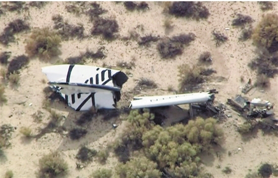 这张10月31日的视频截图显示坠毁的“太空船2号”的残骸。 新华社发