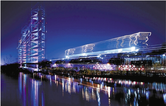 这是11月8日拍摄的玲珑塔及“盘古大观”。连日来,北京国家会议中心周边灯光璀璨,夜景炫丽。 新华社记者 殷刚 摄
