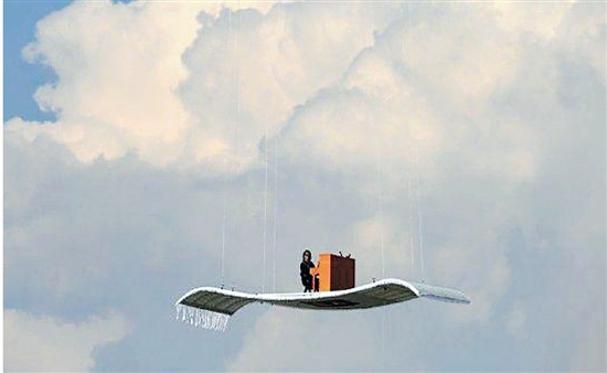7月23日,德国慕尼黑机场,德国钢琴家斯特凡·阿龙携橘色钢琴搭乘铝制“飞毯”在空中弹奏。这是他“橘色钢琴之旅 ”的第四站。迄今他已到过很多常人难以想象的地方进行表演,包括瑞士的阿尔卑呼贝尔山(海拔4206米)和中国的长城。