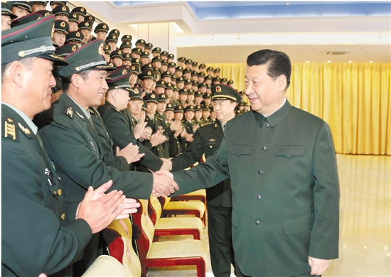 12月20日,中共中央总书记、国家主席、中央军委主席习近平视察中国人民解放军驻澳门部队。这是习近平亲切接见驻澳门部队全体干部。 新华社记者 李刚 摄