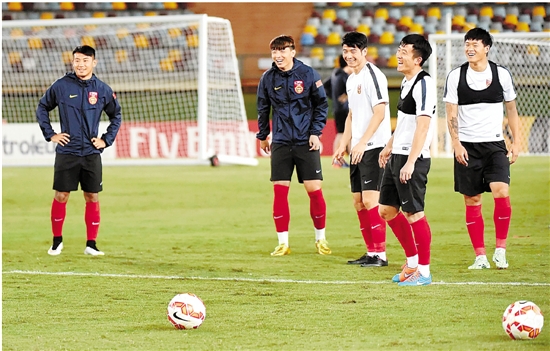 8日,中国队在布里斯班昆士兰体育竞技中心训练,备战10日进行的与沙特队的首场小组赛。 新华社发