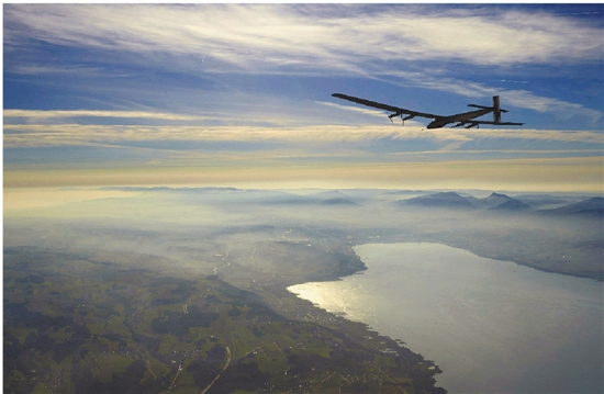 在瑞士纳沙泰尔湖上空,“太阳驱动”2号进行飞行训练。